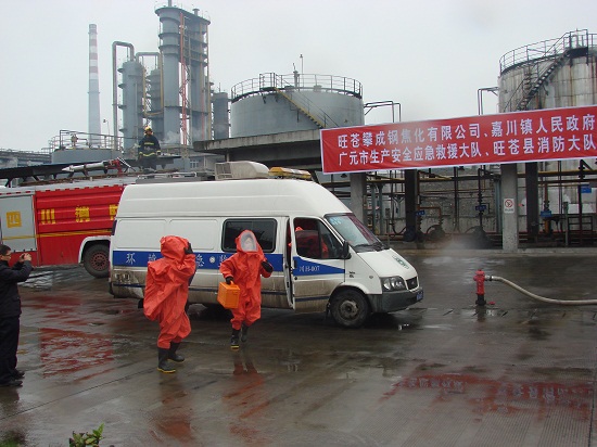 为进一步增强企业环保、消防安全防范意识,提高风险源应对能力,11月13日上午9点30分,广元市生产安全应急救援大队、县环保局应急监测组、消防大队、嘉川镇人民政府、旺苍攀成钢焦化有限公司共同参与在旺苍攀成钢焦化有限公司举行的消防综合应急演练。