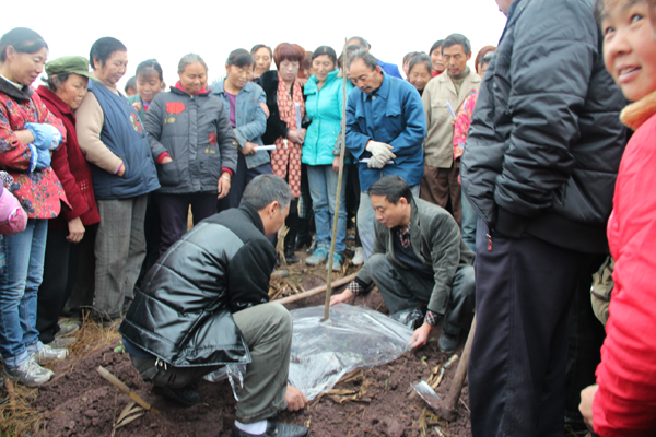 现场会上,镇林业站技术人员讲解了栽植技术要领,11月初至12月上旬为冬季最佳栽植时间,栽植密度为每亩22株,距离为5m×6m,栽植地为坡耕地,现场为干部群众演示了放线、打窝、施肥、栽植、浇水、覆膜等技术要领。黄洋镇要求各村栽植核桃树苗木达到“五个一”,即统一规划放线、统一植株壮苗,施一撮箕肥,浇一桶定根水,盖一张地膜;栽后用生石灰加盐兑水刷枝干消毒。同时要切实加强组织领导,技术人员加强指导,服务到位,农民要栽植好,管护好,将核桃产业抓大抓实。