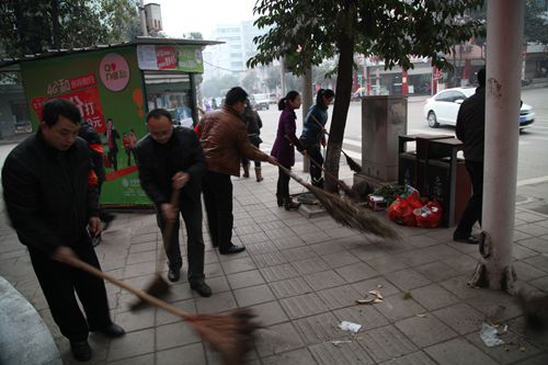 2014年1月1日,县政府办组织全体党员干部走上街头,在红星大道开展义务扫大街和文明劝导活动。本次活动重点对此路段两侧绿化带和公共区域进行了全面打扫,对过往行人不遵守交通规则、乱扔垃圾等不文明行为进行了劝导。县志办、县人防办也主动参与到此次活动之中。