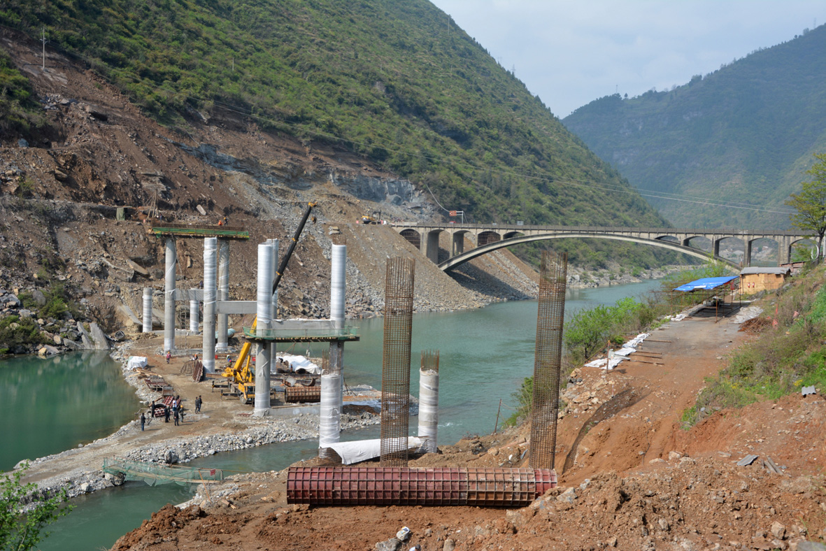 为尽快解决沿线乡镇群众交通运输及出行困难,县委、县政府决定计划投资1400多万元在原桥上游200米处新建一座桥梁。该桥设计时速40km,全长240.251m,主线引道415.749m,桥面净宽12m,桥梁结构2x16+6x25+3x16m简支t梁,设计荷载为公路—ⅰ级。新建桥梁于2013年11月动工,计划工期为一年。截至目前,已完成水下工程施工,完成土石方1.35万m3,正加紧进行桩基、系梁、盖梁施工。已完成工程量30%,完成投资430万元。(县交通运输信息中心)
