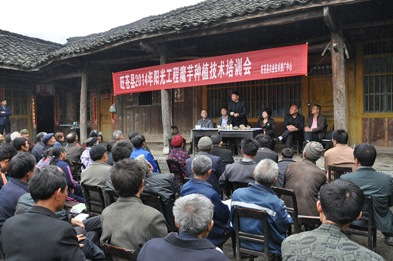 4月15日,由农业局组织的2014年阳光工程培训第一期在普济镇三溪村开班,此期培训班采用集中理论学习和与实践操作相结合的方式进行,专门邀请了广元市魔芋协会会长黄军周担任这次培训的主讲教师。黄军周就当前魔芋产业的发展趋势及市场导向作了客观的研究和分析,向大家展现了大力种植魔芋的美好前景,并进行了技术指导和示范操作培训,他对魔芋种植各个环节作了精辟的讲解和实地示范操作,深入浅出,通俗易懂,课堂气氛非常活跃,学员们表示很欢迎这种培训方式,易懂易学易掌握。最后学员还相互交流了在魔芋种植中取得的成功经验。(县农业局  张品荔)