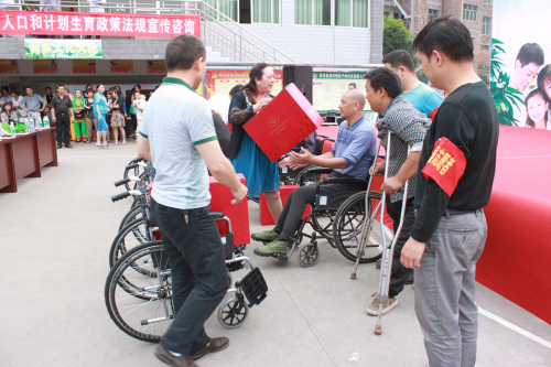 5月27日,旺苍县残联与普济镇普子岭社区联合开展“关心帮助残疾人,实现美好中国梦”的助残活动。此次活动中,县残联为普子岭社区残疾人发放轮椅15辆,夏被50床,大米50袋,并为社区残协捐赠工作经费3000元,为“残疾人爱心超市”捐赠价值8万元的衣物及生活用品。