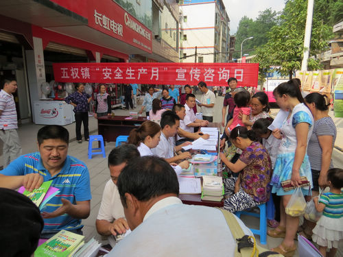 6月18日,五权镇组织镇安办、交管办、派出所、供电、卫生、国土、林业等部门在场镇开展“安全生产月”宣传咨询日活动,大力宣传安全生产法律法规,以及安全生产常识,吸引众多群众前来咨询。