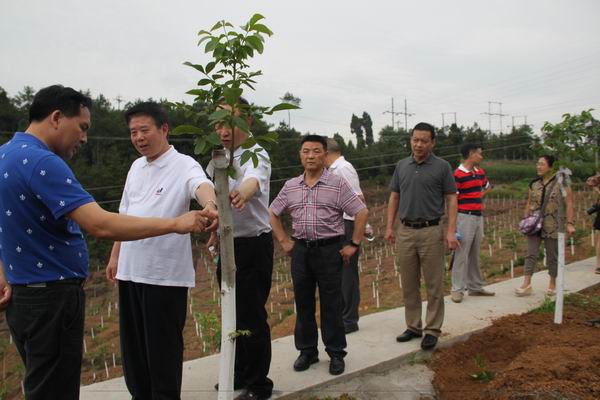 6月26日,省人大常委会委员、农委副主任委员刘海金一行来我县调研核桃育苗和采穗圃建设,市县相关领导参加调研。