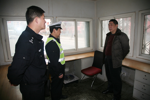 在东城中学交通执勤岗亭,孙益科听取了县交警大队负责人对近期交通安全管理工作的汇报,并强调要切实加强路面巡逻监控,结合“双超”治理工作,按照“零容忍、严执法、重实效”的要求,加大整治各类交通违法行为的力度;要切实规范执法行为,加强执法安全,从执法执勤的源头入手,努力提高民警效率和依法处置的能力。