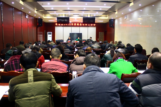 1月12日,我县2015年度综合考评工作会在县委十楼会议室召开,县领导朱桂桦、杜非、王尔敏及各考核组副组长、考核组成员参加会议。