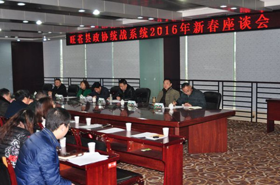 1月29日,县政协统战系统2016年新春座谈会在旺宾四楼中型会议室召开。县政协主席赵俊科,副主席彭钚、张宽生、杨忠,秘书长李永明,政协机关干部,民建、民盟、九三主委,工商联党组书记、副主席参加会议;县委常委、常务副县长杜非应邀出席会议。会议由县政协副主席、县委统战部部长张宽生主持。