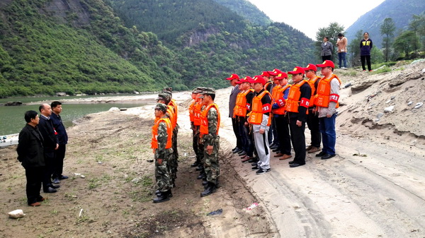 为进一步落实《旺苍县防洪应急预案》,检验抢险专业队伍的快速反应能力,提高抢险救灾应急处置水平,4月21日,县人民政府防汛抗旱指挥部组织武警旺苍县中队官兵和县共产党员防汛抢险突击队在高阳镇向阳村砂湾水域内举行了一场防洪应急救援演练。副县长、县人民政府防汛抗旱指挥部指挥长沈友文出席演练并下达演练开始指令。