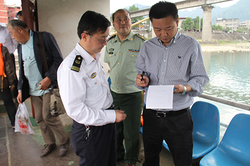 随后杜非一行来到小溪渡口,现场检查了渡船本体的运行安全、救生设施的配备、渡工证件、安全责任制等情况。针对存在的安全隐患问题,杜非要求渡船责任人限时作出整改,并要求相关单位做好督促落实。杜非强调,要严格遵守各项安全生产规章制度,严禁非法载运或携带危险品行为;要时刻保持高度警惕,谨慎操作安全驾驶;要时刻保持高度的责任心,在节假日期间严格落实值班制度,严厉打击渡船在节假日期间冒险超载航行,全力确保我县水上交通安全形势稳定。