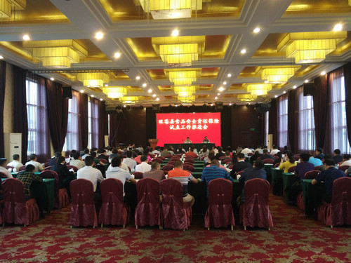 5月31日,我县食品安全责任保险试点工作推进会在良宇酒店六楼会议室召开。县食安委副主任、副县长祝迎春出席会议,县级相关部门负责人、各乡镇(管理办)分管领导、保险公司负责人及部分行业代表共计150余人参加会议。