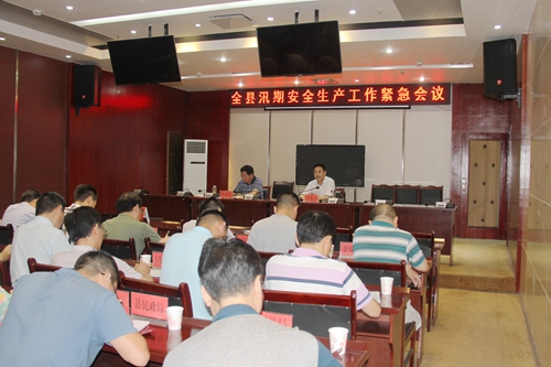 为将省市汛期安全生产工作紧急电视电话会议精神落到实处,6月7日,县委副书记、代县长余飞宇在县委十楼会议室专题组织召开紧急会议,安排部署全县汛期安全生产工作。副县长胥勋雷,全县安委会成员单位、各乡镇(管理办)、部分企业负责人参加会议。