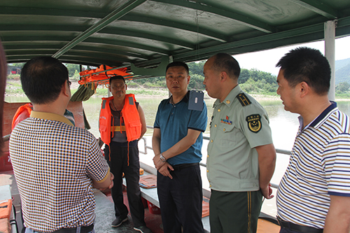随后,杜非一行来到嘉川镇五四渡口,登上渡船与工作人员交流安全知识与遇险处理措施并现场查看安全装备、渡工证件等。杜非指出,提高渡船从业人员的安全意识、加强对风险的预判是当务之急,要吸取我市白龙湖6.4沉船事件经验教训,坚持“渡口不能讲人情、生命安全重于一切”的原则,同时,要全面加强对客渡船舶的安全监管,有效遏制客渡船舶重大水上交通责任事故发生。