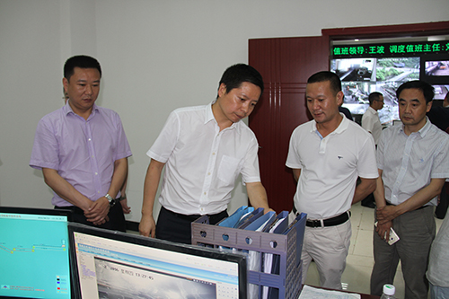 在石洞沟煤矿,陈泉认真听取了煤矿调度室工作人员对监控调度工作的现场讲解,并就煤矿瓦斯和水害防治、重大灾害防治、汛期煤矿安全工作等方面进行详细检查督导。