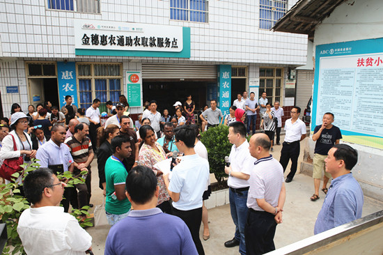 在中国国际扶贫中心社会扶贫处处长魏伯平、副县长沈友文的陪同下,来自伊拉克、巴勒斯坦、东帝汶、叙利亚等西亚部分国家的14名官(学)员先后考察调研了我县张华镇松浪村农行扶贫小额信贷网点和张华镇大地村互助资金项目推进落实情况,并实地了解了松浪村村民李秀华扶贫小额信贷项目开展情况。