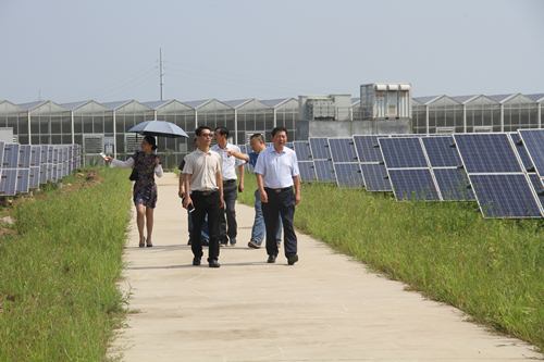 胥勋雷一行实地参观考察了安徽金寨100兆瓦农光互补光伏电站项目并详细听取了工作人员的介绍。