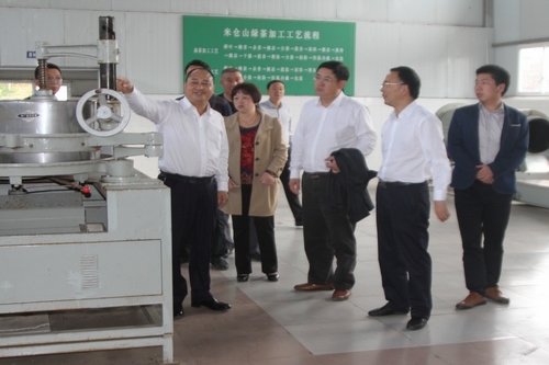在木门镇三合现代农业园区,杨浩一行实地查看了黄茶产业发展现状,并深入茶叶加工厂、茶叶专合社详细了解了茶叶生产加工工艺及农企利益联结情况,与茶企负责人、专合社理事长亲切交谈,对米仓山茶业“以加大科技创新投入,延伸产业链为发展战略;以提高茶产品质量和档次,做强‘米仓山’系列茶叶品牌为目标”的做法给予了充分肯定,并就如何提高茶叶种植的社会效益和经济效益提出了意见和建议。他指出,近年来,旺苍县将茶产业作为农业主导产业重点培育,大力推动农业现代化发展,有效促进了生态、经济、产品、市场四个发展要素的良性循环,为最终实现产业发展、企业增效、农民增收奠定了坚实的基础,是一种值得倡导的发展模式。针对下一步产业发展,他要求,要坚持产业高效化、发展生态化、产品特色化、生产标准化、经营模式化、品牌高端化的发展要求,保障茶叶的有机品质和富硒、富锌特色,在绿茶发展较为成熟的基础上引入更多的茶叶品种,找准市场需求,扩大种植规模,完善加工工艺,让名气大起来、让农民富起来。