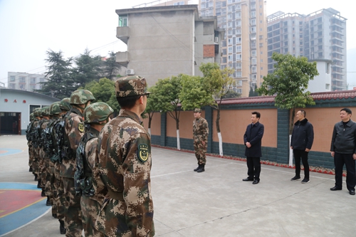 在武警旺苍中队,吴健代表县委、县政府亲切看望慰问了全体官兵,向他们致以节日的问候,并送上了慰问金和慰问品,感谢他们长期以来在维护地方社会治安稳定、保障人民群众生命财产安全、积极参加抢险救灾等方面所做出的无私奉献。希望全体武警官兵再接再厉,继续发扬特别能吃苦、特别能战斗、特别能奉献的优良作风,为县域经济社会持续健康发展和人民生命财产安全保驾护航。