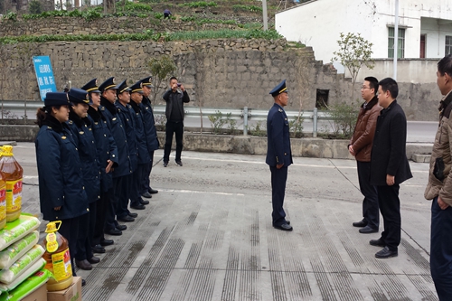 在旺宁路指挥部、周家坝超限检测站,王刚代表县委县政府慰问了坚守工作岗位的一线工作人员。王刚指出:2016年,旺宁路施工队伍不畏艰辛,积极作为,按时保量完成了年度建设计划,希望在2017年能够继续发扬优良工作作风,更加务实,攻坚克难,尽早完成建设任务。周家坝超限站肩负检测进出北部山区货运与客运运输量的重要使命,工作任务重、压力大,但各位执法人员认真履行工作职能,力保2016年进出北部山区车辆未发生重大安全事故,为保障司乘人员生命财产安全作出了巨大贡献,希望大家再接再厉,奋勇拼搏,2017年再创佳绩。