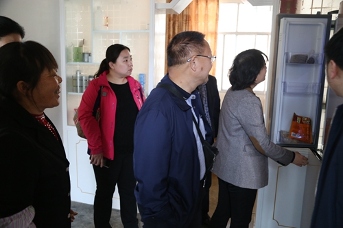 在嘉川镇五红村,李晖一行来到易地扶贫搬迁集中安置点,仔细查看易地扶贫建设及配套产业发展情况,在简单了解相关工作开展、推进情况后,调研组一行来到贫困户李某家中,与贫困进行了亲切的交谈。