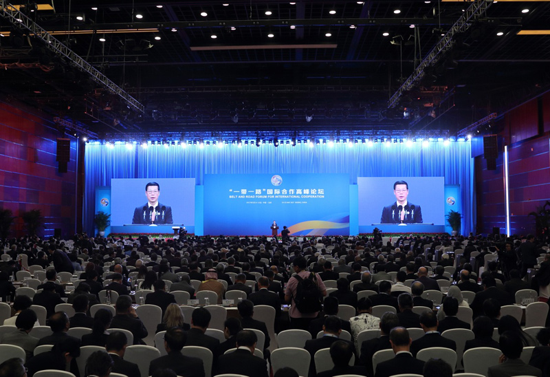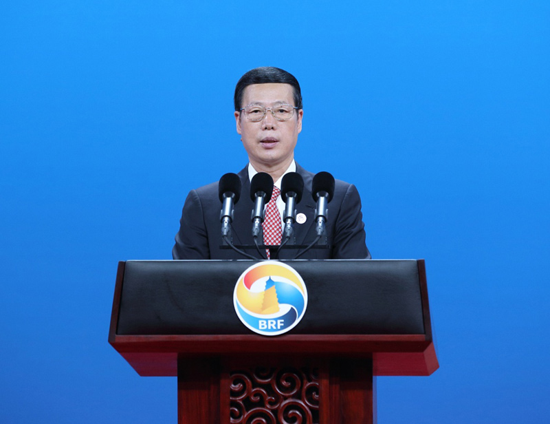 5月14日,中共中央政治局常委、国务院副总理张高丽在北京出席“一带一路”国际合作高峰论坛高级别全体会议并发表题为《坚持共商共建共享 加强“五通”交流合作》的致辞。新华社记者 王晔 摄