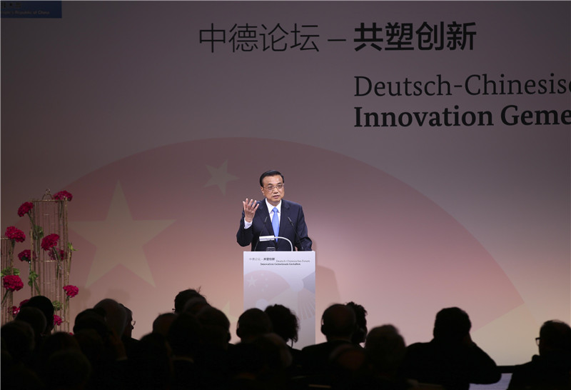 李克强强调,我们要推动大中小企业融通创新。德国“隐形冠军”企业众多,中国有数十万家科技型中小企业,大众创业万众创新蓬勃兴起。中方愿同德方成立中小企业合作政府层面的机制,推动形成网络式、集群式合作。搭建更多融通创新服务平台,提供全方位服务。加快各类中德产业聚集区建设,打造一批示范基地。中德都是经济全球化的积极参与者,我们要营造自由开放的贸易投资环境,推进双向开放、平等开放,为两国创新合作营造更加便利、公平的环境。完善政策支撑体系,整合资源,健全机制,加大投入,支持两国各类创新主体共建智能制造联盟、科技创新联盟、职教合作联盟。鼓励两国留学生、青年科学家加强交流,推动落实两国实习生交流计划,办好首个中德青年创新创业合作周。在创新合作中,中方严格保护企业知识产权,不要求强制转让技术,欢迎德国企业开拓中国新能源汽车市场。