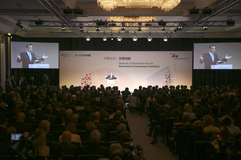 当地时间6月1日上午,国务院总理李克强在柏林与德国总理默克尔共同出席“中德论坛-共塑创新”并发表演讲。