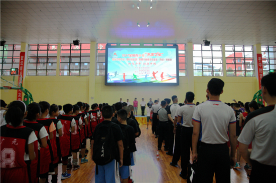 飒爽英姿展娴熟球技,八方健儿聚红城赛场。7月29日,2017全国青少年“未来之星”阳光体育大会(四川分会场)暨四川省青少年篮球(丙组)锦标赛在我县七一中学拉开帷幕。省体育局副局长蒋显伦,省体育局青少年体育处处长赵军,省运动技术学院篮球管理中心书记伊丽萍,市人民政府副秘书长罗全生,县委副书记、县长余飞宇,县委常委、宣传部部长张健,副县长李佳出席开幕式。