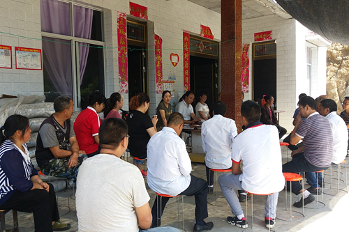 在与贫困户“同劳动”后,李佳一行还在赵剑家中召开了“坝坝会”,并对教育、卫计扶贫政策进行了宣讲。李佳指出,一是强化政策培训。要把培训作为推进精准脱贫工作的重要抓手,以集中宣传、进村入户、发放宣传册等方式,突出培训实效,进一步提升广大群众对医疗、教育等扶贫政策的知晓率,形成全社会共同关注精准扶贫工作的良好氛围。二是做细基础工作。要对照户脱贫、村退出的标准,逐一梳理工作中存在的问题,建立问题整改台账,限时整改到位;同时,要进一步完善脱贫档案资料、项目建设资料,切实做好痕迹管理工作。三是激发内生动力。贫困群众既是脱贫攻坚的对象,更是脱贫致富的主体,要着力激发贫困群众发展生产、脱贫致富的主动性,培育贫困群众自力更生的意识和观念,引导广大群众依靠勤劳双手和顽强意志主动实现脱贫致富。