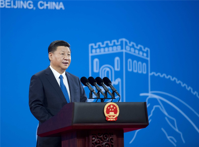 9月26日,国家主席习近平在北京国家会议中心出席国际刑警组织第86届全体大会开幕式并发表题为《坚持合作创新法治共赢 携手开展全球安全治理》的主旨演讲。新华社记者 李学仁 摄
