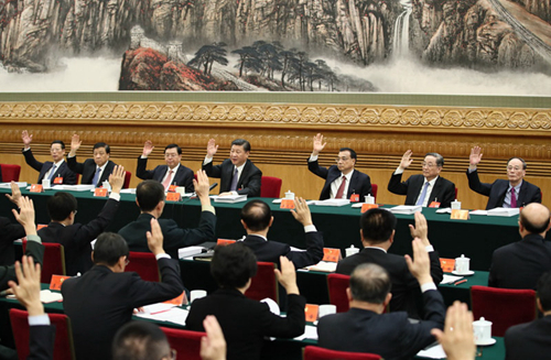 10月23日,中国共产党第十九次全国代表大会主席团在北京人民大会堂举行第四次会议。习近平、李克强、张德江、俞正声、刘云山、王岐山、张高丽等出席会议。新华社记者 兰红光 摄