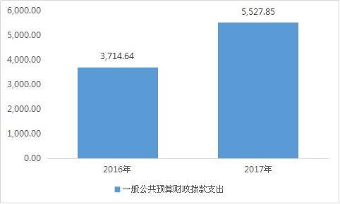 2017年度一般公共预算财政拨款支出5,527.85万元,占本年支出合计的100%。与2016年3,714.64万元相比,一般公共预算财政拨款增加1,813.21万元,增长43.47%。