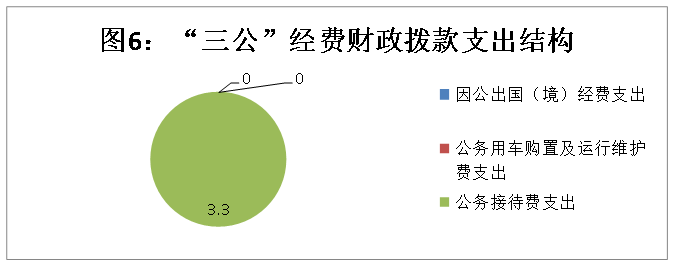 2017年度“三公”经费财政拨款支出决算中,因公出国(境)费支出决算0万元;公务用车购置及运行维护费支出决算0万元;公务接待费支出决算3.30万元,占100%。具体情况如下: