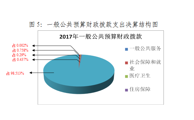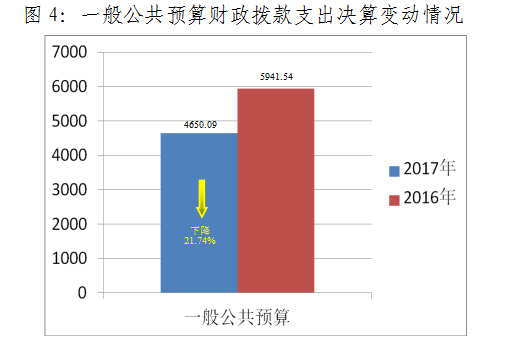 2017年度一般公共预算财政拨款支出4650.09万元,占本年支出合计的97.38%。与2016年相比,一般公共预算财政拨款减少1291.45万元,下降21.74%。