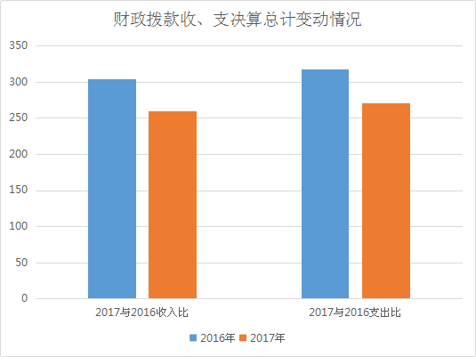 2017年度财政拨款收、支总计分别为260.27万元、271.23万元。与2016年相比,财政拨款收、支总计各减少43.53万元、47.00万元,分别下降14.33%、14.77%。