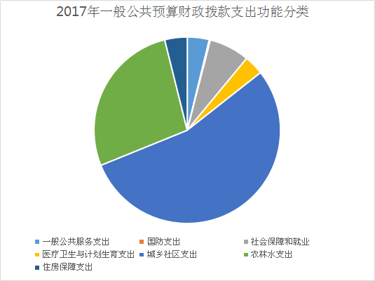 2017年一般公共预算财政拨款支出271.23万元,主要用于以下方面:一般公共服务支出10.26万元,占3.8%;国防支出0.5万元,占0.2%;社会保障和就业18.92万元,占7%;医疗卫生与计划生育支出9.33万元,占3.4%;城乡社区支出147.79万元,占54.48%;农林水支出73.91万元,占27.25%;住房保障支出10.52万元等占3.87%;