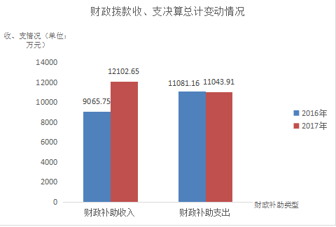 2017年度财政拨款收入总计12102.65万元,与2016年相比,财政拨款收入增加3039.90万元,增长33.5%。