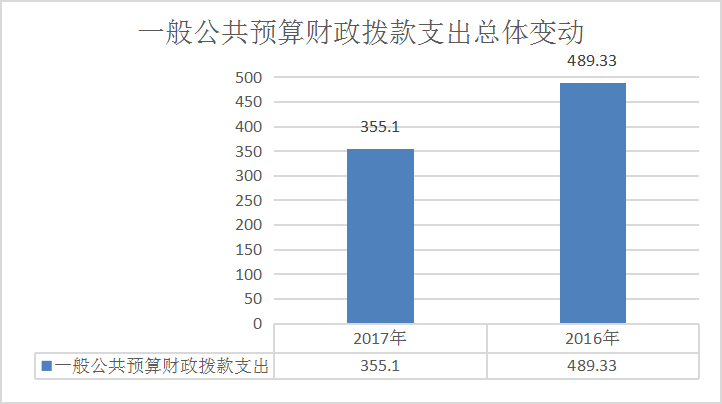 2017年度一般公共预算财政拨款支出355.10万元,占本年支出合计的100%。与2016年相比,一般公共预算财政拨款减少134.23万元,下降37.8%。