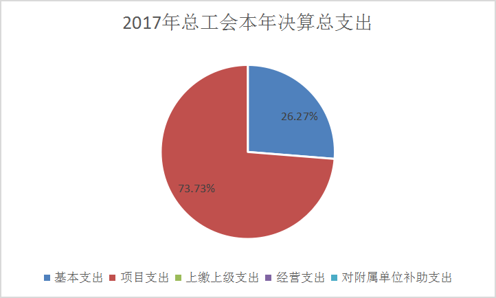 2017年总工会本年支出合计355.10万元,其中:基本支出93.28万元,占26.27%;项目支出261.81万元,占73.73%;上缴上级支出0万元,占0%;经营支出0万元,占0%;对附属单位补助支出0万元,占0%。