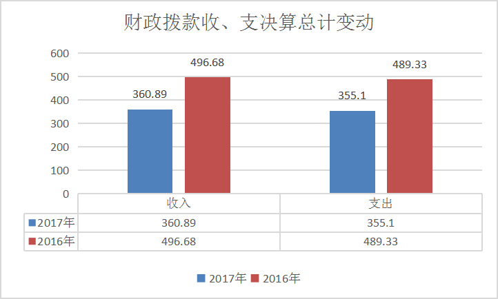 2017年度财政拨款收入为360.89万元、支出355.10万元,与2016年相比,财政拨款收入减少135.79万元、下降37.62%,支出减少134.23万元,下降37.8%。主要是创新创业项目完工及压缩开支。