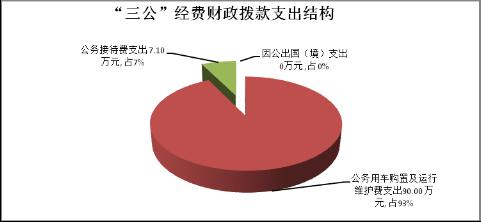 2017年度“三公”经费财政拨款支出决算中,因公出国(境)费支出决算0万元,占0%;公务用车购置及运行维护费支出决算90万元,占93%;公务接待费支出决算7.1万元,占7%。具体情况如下: