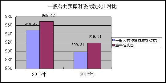 2017年度一般公共预算财政拨款支出899.31万元,占本年支出合计的97.82%。与2016年相比,一般公共预算财政拨款支出减少50.11万元,下降5.28%。