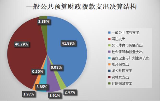 2017年一般公共预算财政拨款支出507.73万元,主要用于以下方面:一般公共服务支出212.69万元,占41.89%;国防支出0.4万元,占0.08%;文化体育与传媒支出12.52万元,占2.47%;社会保障和就业支出30.01万元,占5.91%;医疗卫生与计划生育支出19.54万元,占3.85%;节能环保支出10万元,占1.97%;城乡社区支出1万元,占0.2%;农林水支出204.55万元,占40.29%;住房保障支出17.03万元,占3.35%。