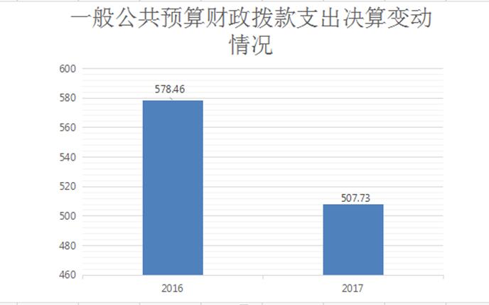 2017年度一般公共预算财政拨款支出507.73万元,占本年支出合计的96.12%。与2016年578.46万元相比,一般公共预算财政拨款减少70.73万元,下降12.23%。