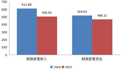 2017年度财政拨款收入总计505.03万元。与2016年收入相比,财政拨款收入减少106.86万元,下降26.84%。