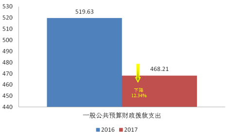 2017年财政拨款支出468.21万元,与2016年支出相比,财政拨款支出减少51.42万元,下降12.34%