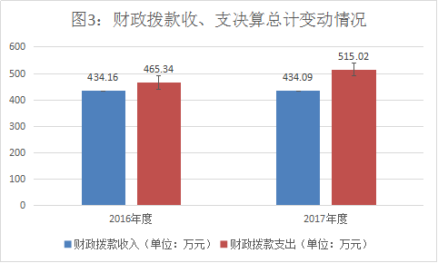 2017年度财政拨款收入434.09万元,与2016年收入相比,财政拨款收入减少0.07万元、下降0.02%。