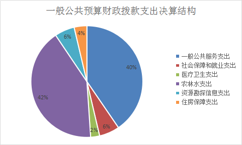 2017年一般公共预算财政拨款支出515.02万元,主要用于以下方面:一般公共服务支出164.47万元,占31.94%;教育支出0万元;社会保障和就业支出23.89万元,占4.64%;医疗卫生支出10.49万元,占2.04%;农林水支出169.27万元,占32.87%;资源勘探信息支出23.39万元,占4.54%;住房保障支出14.91万元,占2.89%。