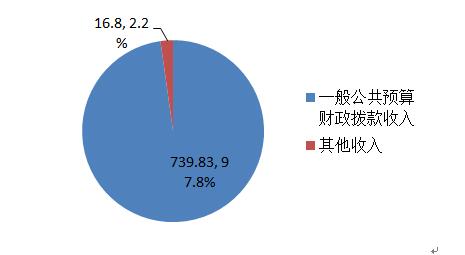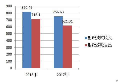 2017年度财政拨款收入756.63万元,与2016年收入相比,收入减少63.86万元,下降7.8%。