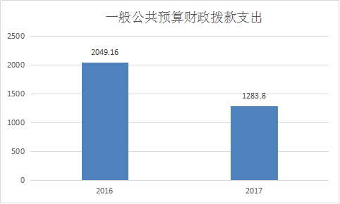 2017年度一般公共预算财政拨款支出1283.80万元,占本年支出合计的100%。与2016年相比,一般公共预算财政拨款减少765.36万元,下降37.35%。