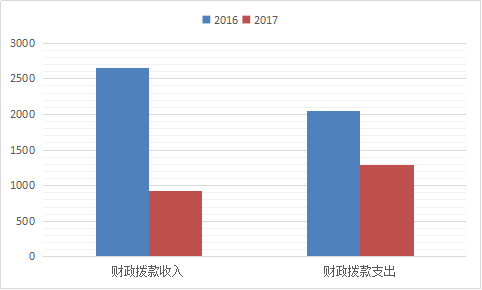 2017年度财政拨款收入总计926.33万元,2017年度财政拨款支出1283.80万元。与2016年相比,2016年财政拨款收入总计2652.21万元,减少1725.88万元,下降65.07%;2016年财政拨款支出总计2049.16万元,减少765.36万元,下降37.35%。